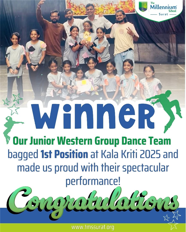 Our Junior Western Group Dance Team bagged 1st Position at Inter-School Kala Kriti 2025 and brought glory to our school with their outstanding