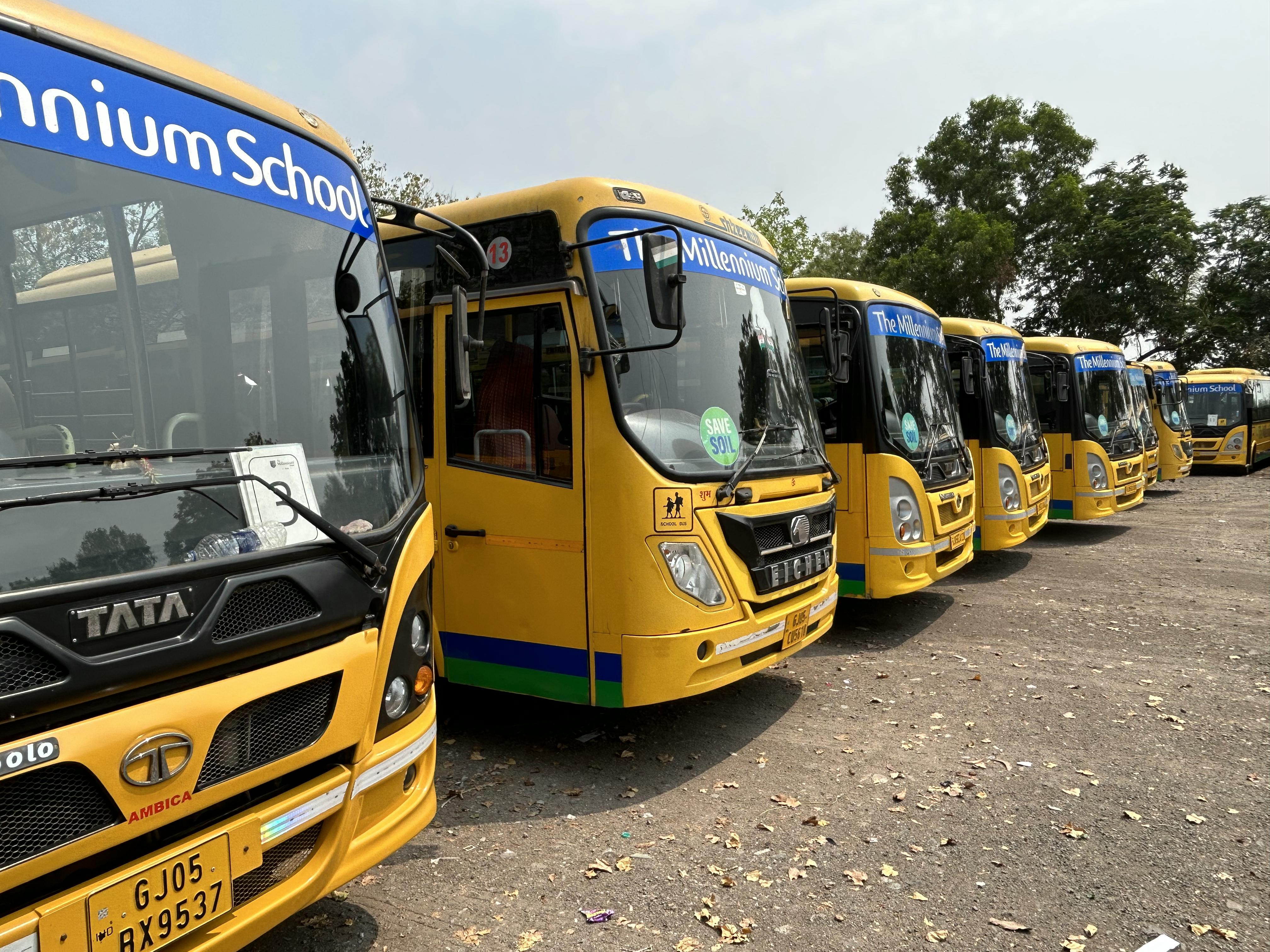 pick up and drop the students from intricately convenient bus-stops covering major parts of Surat City.