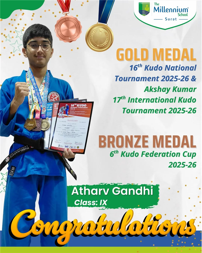 Celebrating the incredible success of Atharv Gandhi (Class IX) who has made us all proud with his remarkable individual achievements: