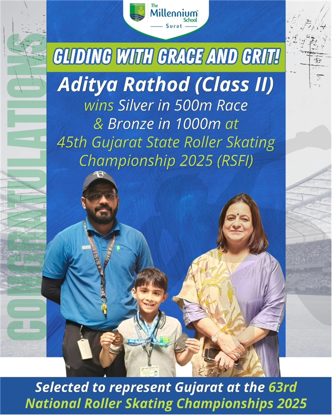 and selected to represent Gujarat at the 63rd National Roller Skating Championships 2025!
