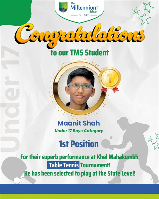 A big congratulations to our Table Tennis District Level winner who made us proud at the Khel Mahakumbh