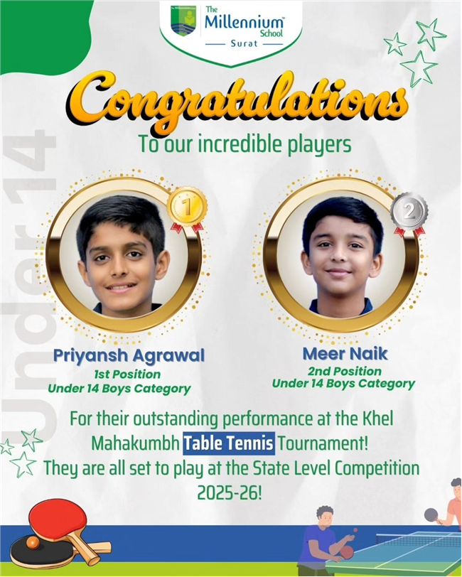 A big congratulations to our Table Tennis District Level winners who made us proud at the Khel Mahakumbh